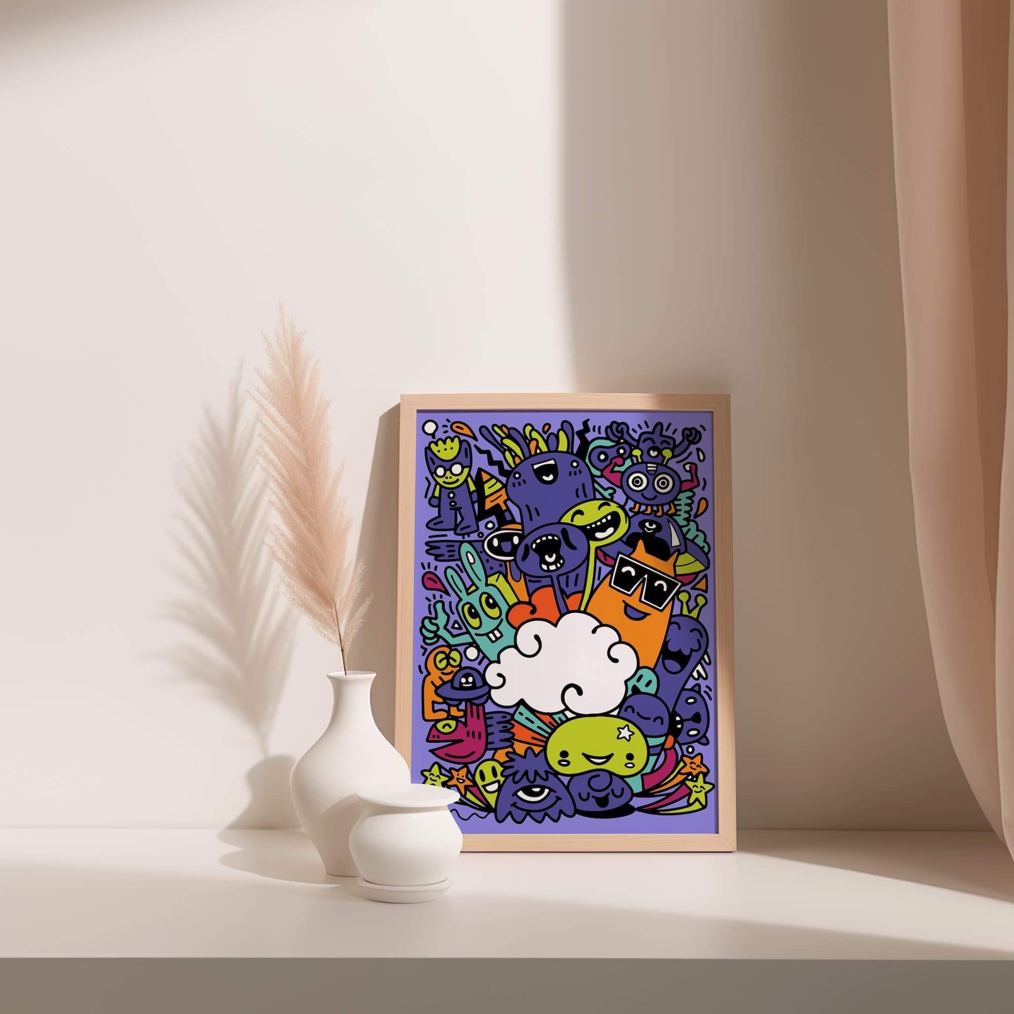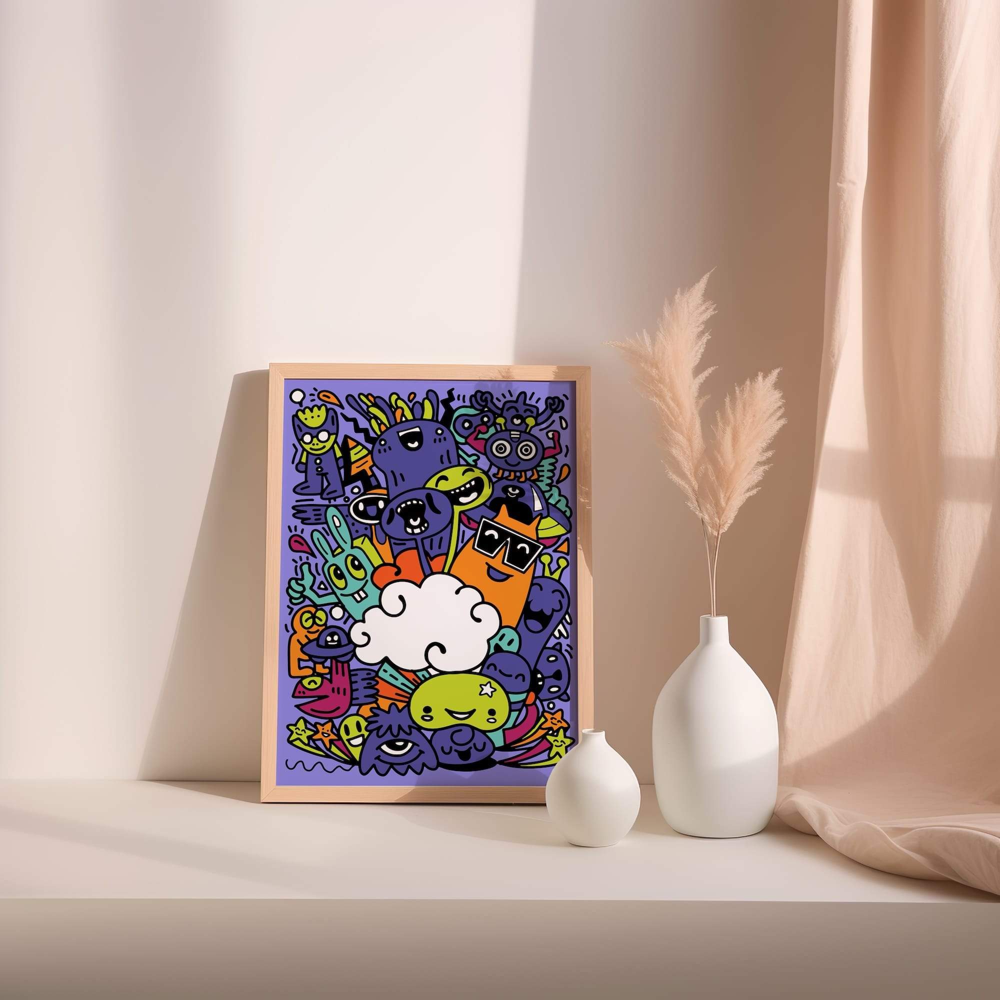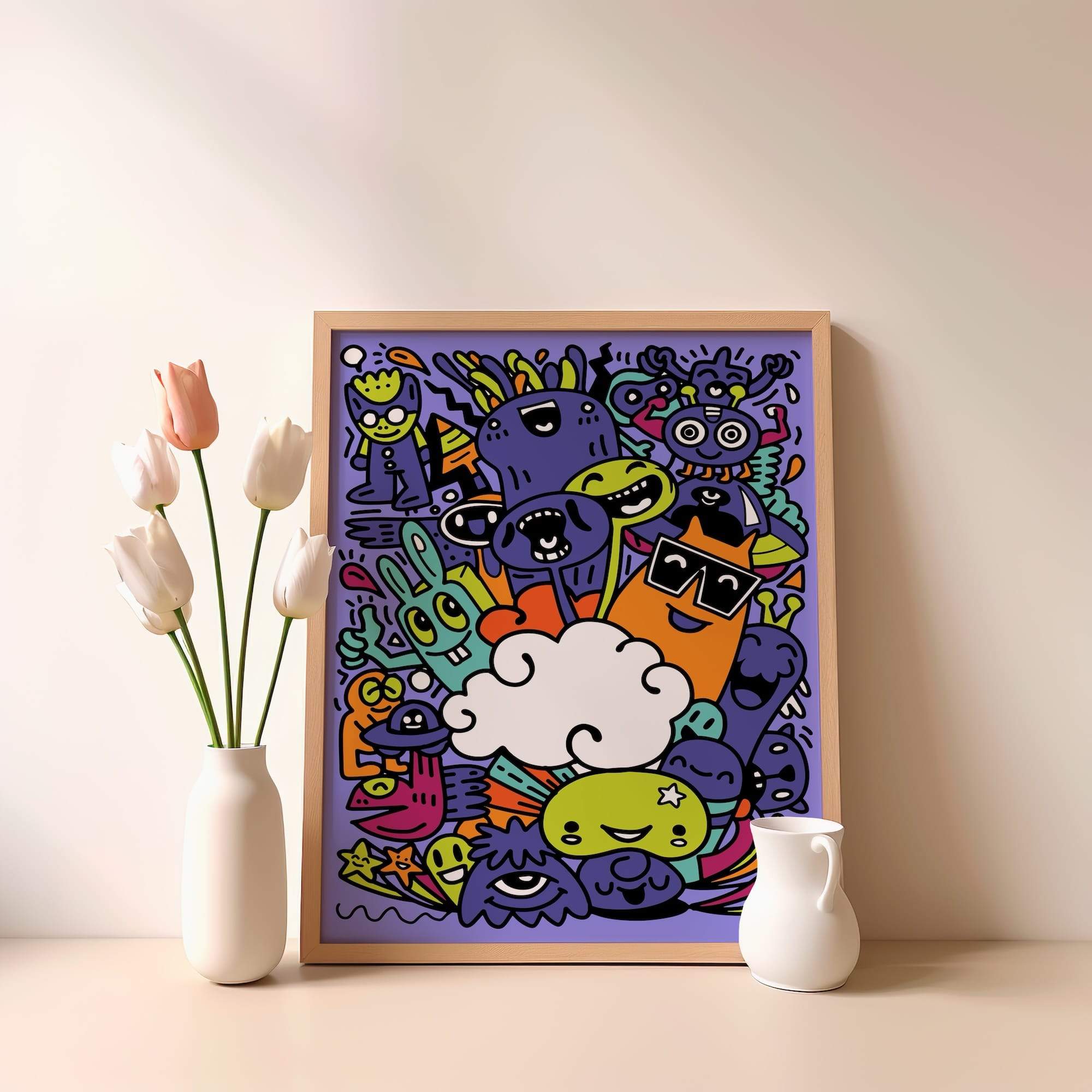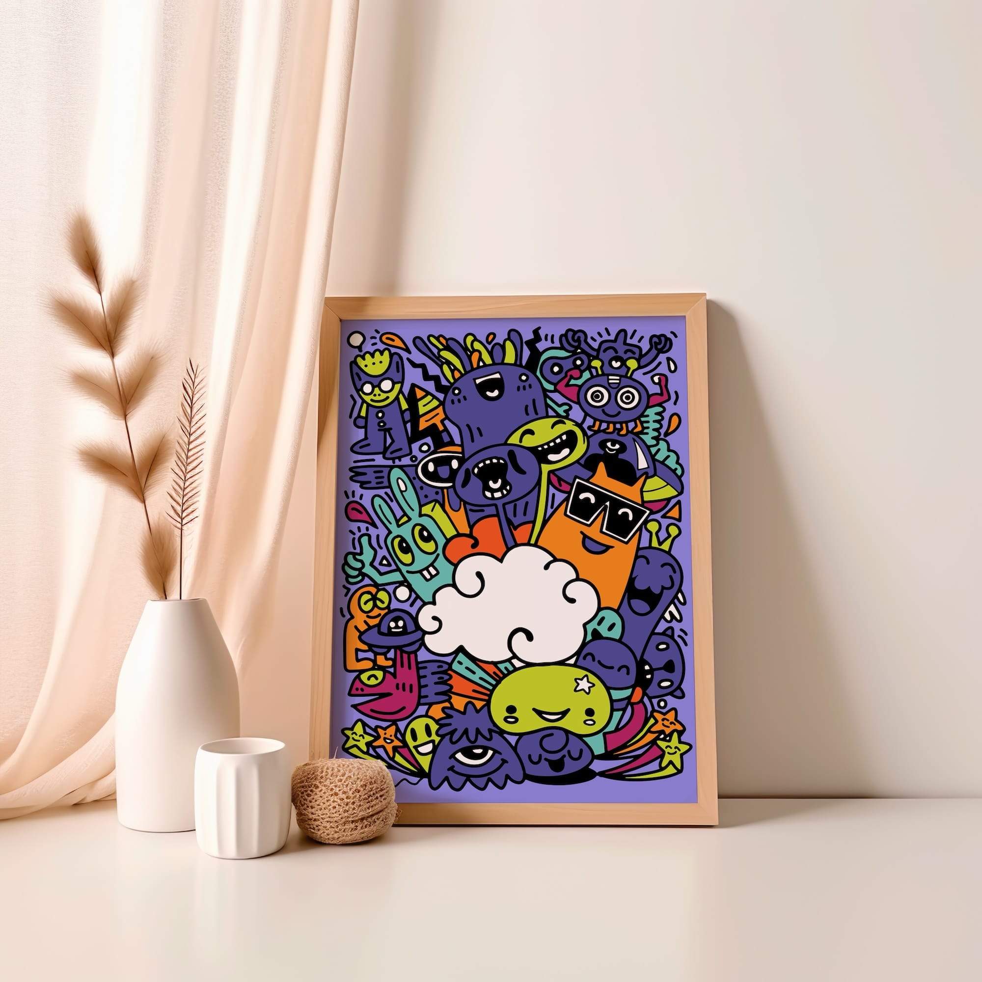 Minimalism meets maximum joy in this perfect synthesis of simple lines and profound happiness. These bold outlined happy blobs prove that the most powerful art often comes from the purest expressions, where smiling faces and flat style create something universally uplifting. The matte surface emphasizes the clean, confident outlines while letting the bold colors speak with quiet authority. Ideal for modern spaces needing warmth or minimalist corners craving personality, this piece demonstrates that complexity isn’t required for emotional impact. The minimal doodles create an atmosphere of uncomplicated contentment, where happiness feels both effortless and essential to well-designed living spaces.