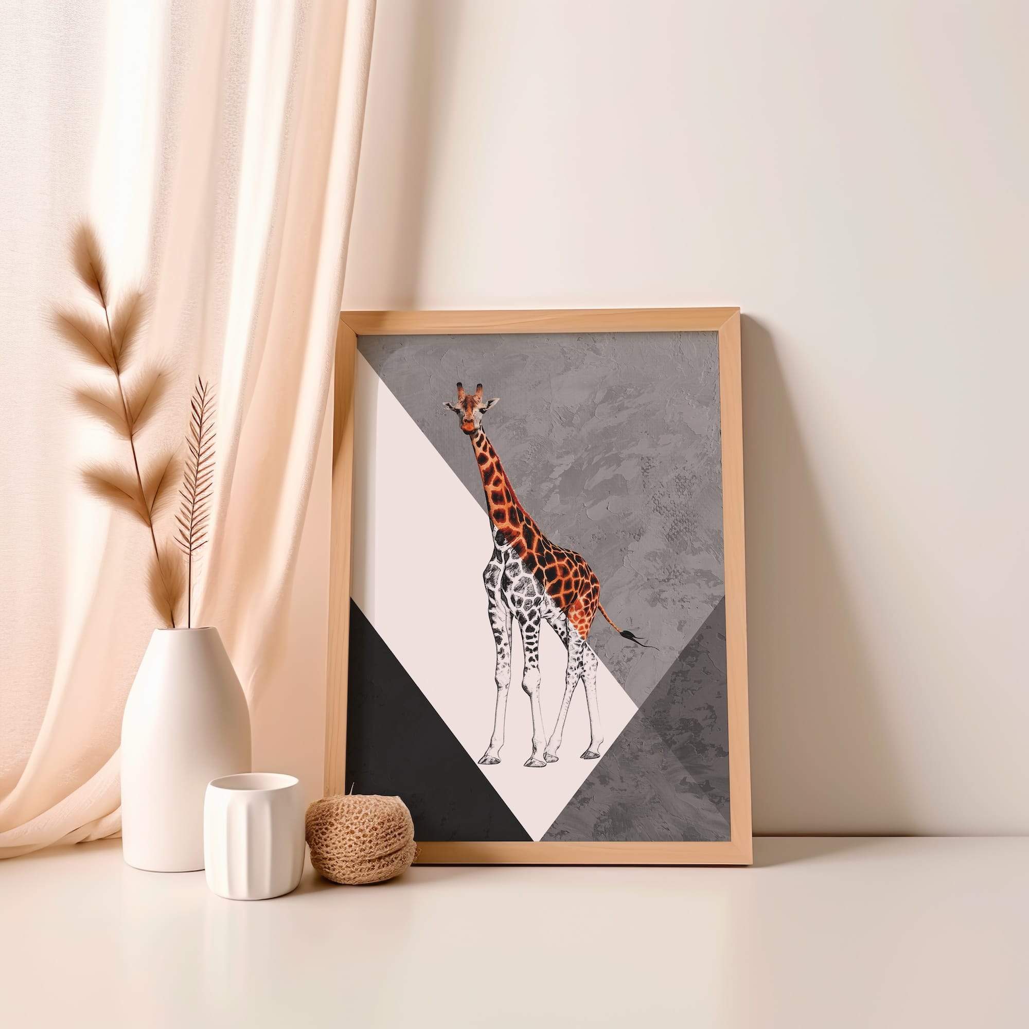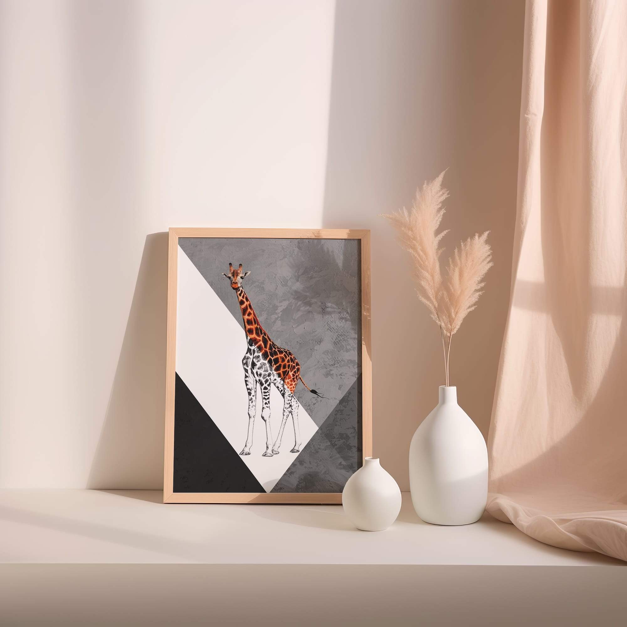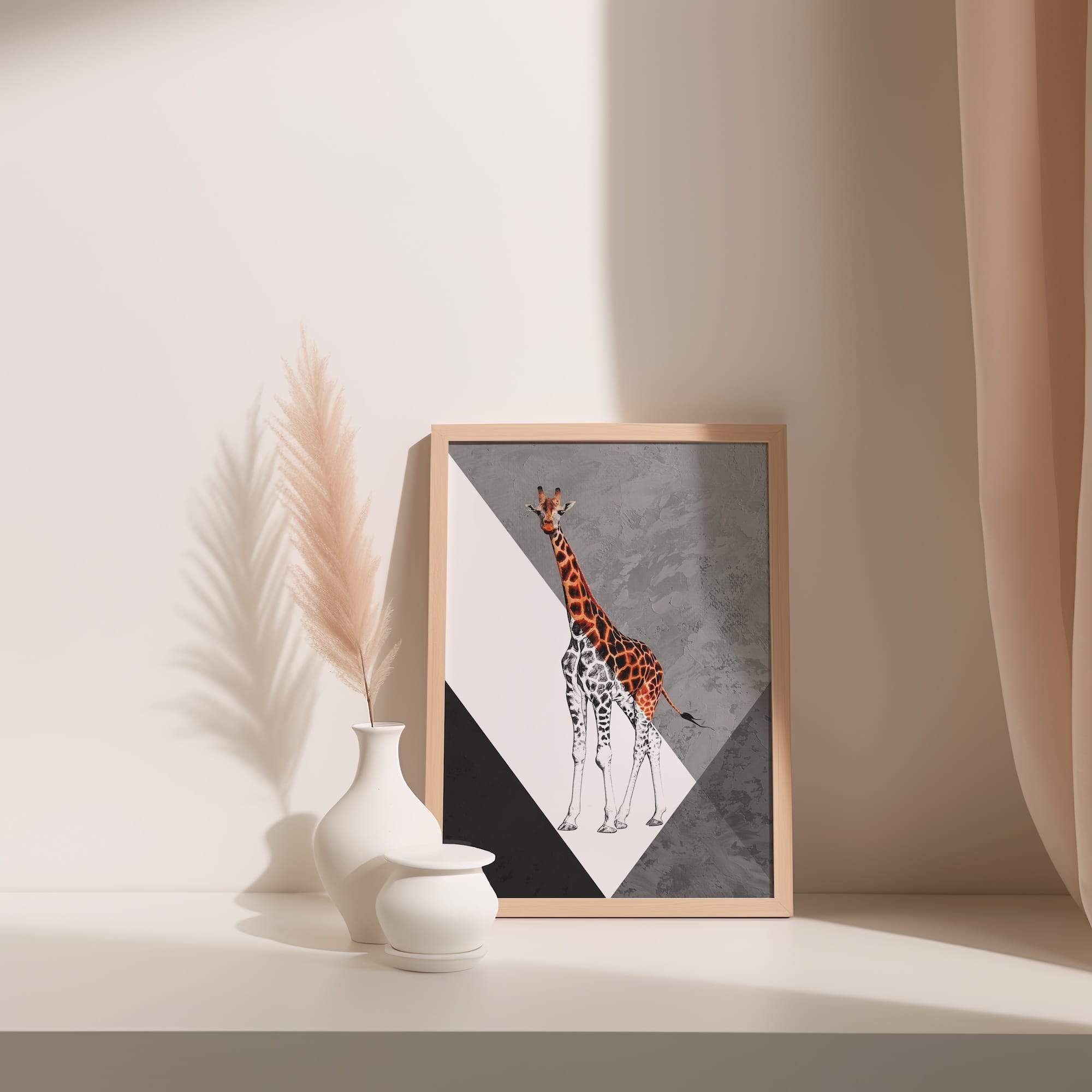 Grace reaches new heights in this captivating study of nature’s most statuesque wanderer. The giraffe’s towering elegance is beautifully captured through a masterful blend of half-sketched body and meticulously detailed spotted fur, creating a modern artistic piece that seamlessly marries realism with artistic interpretation. The matte finish enhances the graphic impact of this tall animal portrait, allowing the sophisticated line work to breathe and stand out against any wall. This striking piece is ideal for an entryway or bedroom, where its vertical presence can truly shine and make a statement. The artwork adds instant sophistication to contemporary spaces, transforming them with its neutral palette and thoughtful composition. The result is a sense of calm authority that turns any room into a curated sanctuary, honoring the quiet majesty of African wildlife. This giraffe portrait is more than just decoration; it’s a testament to the beauty and grace of one of nature’s most iconic creatures, inviting viewers to pause and appreciate the artistry of both the subject and the creator.