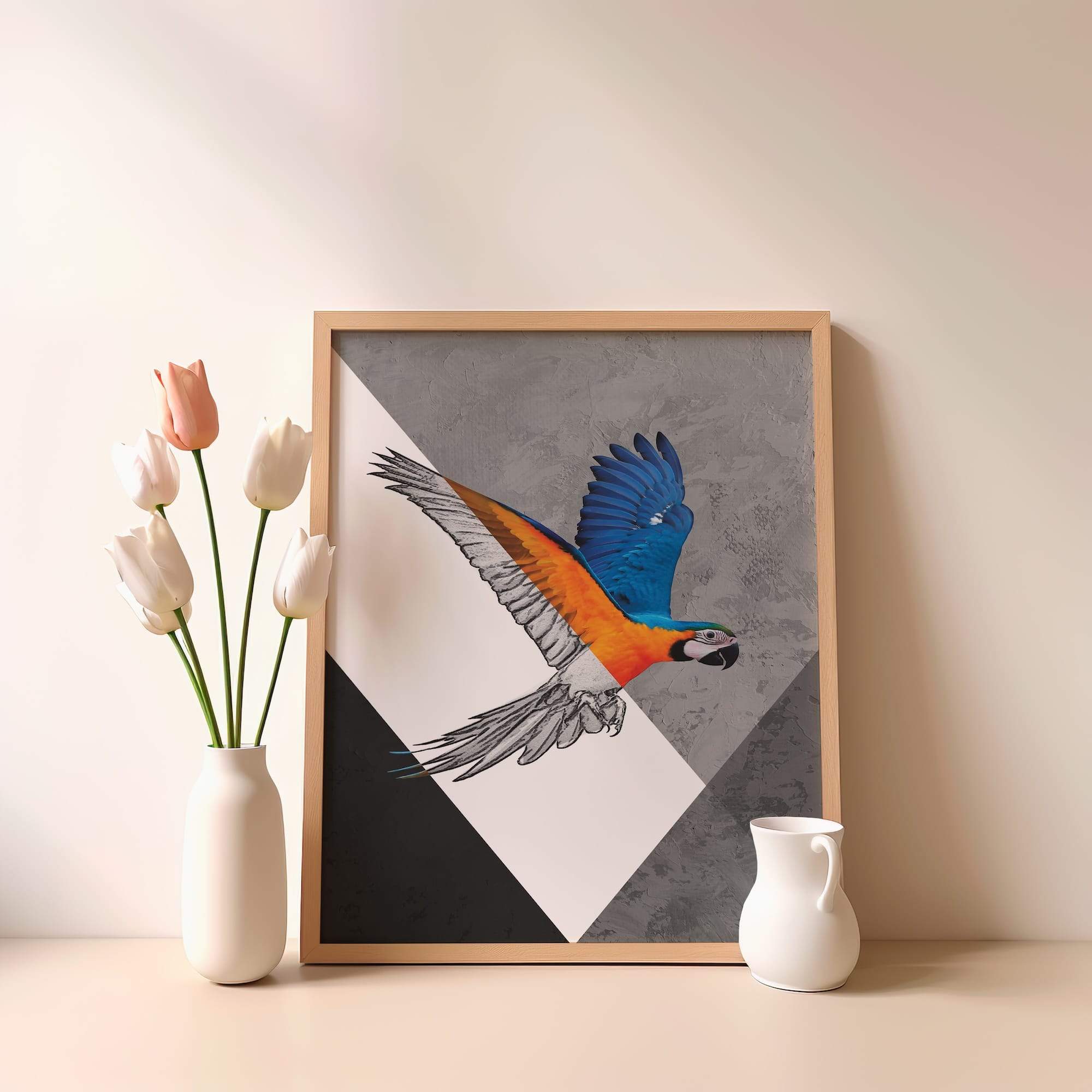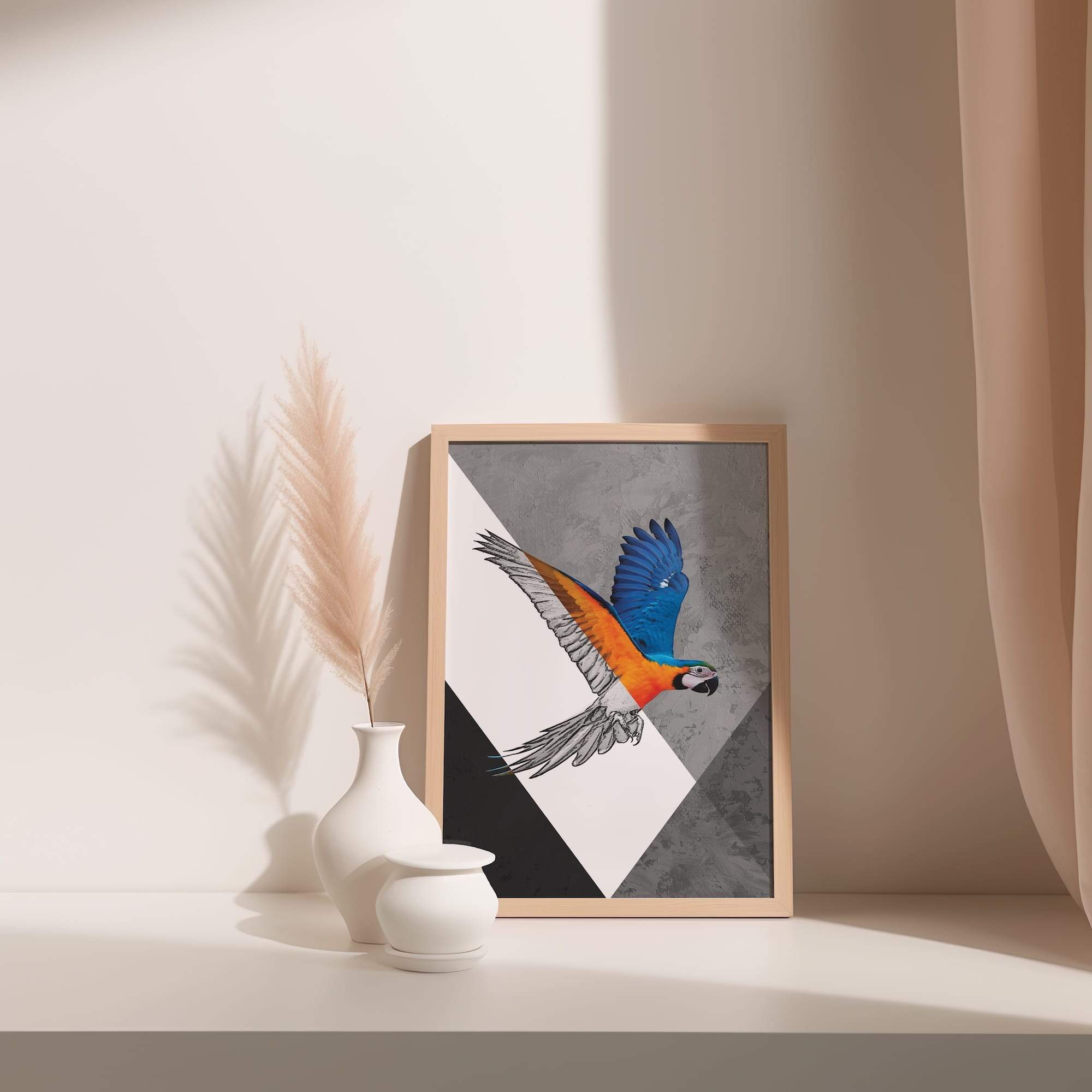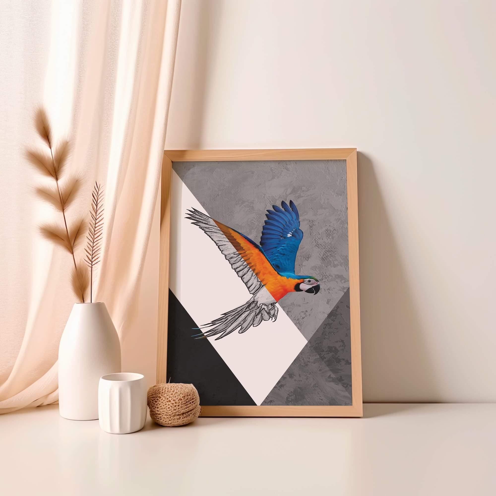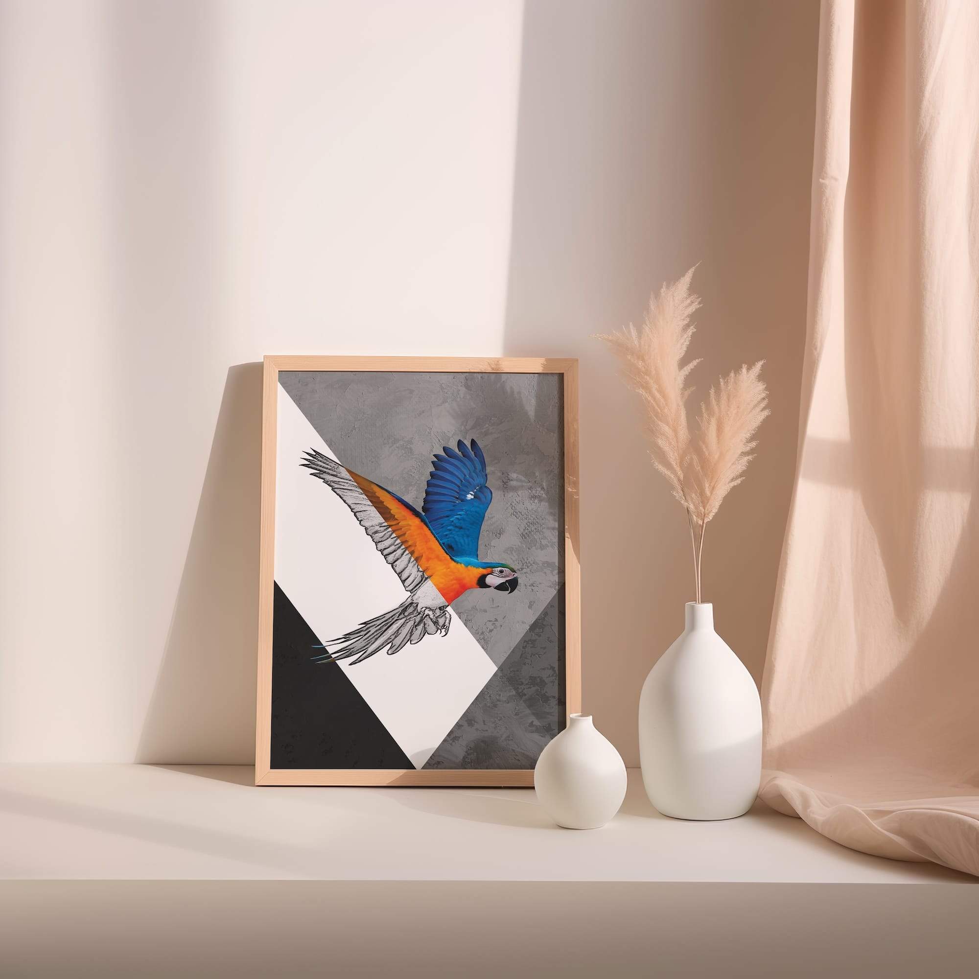 Tropical splendor takes wing in a symphony of sketch and spectrum. This macaw’s dynamic flight unfolds through vibrant feathers and soaring wings, where parrot portraiture meets artistic celebration of nature’s most colorful aviator. The matte poster brings out every vivid hue while maintaining the integrity of the sketched elements, creating tropical bird art that feels both exotic and accessible. Ideal for a sunroom or living area where its joyful energy can brighten daily life, this piece transforms spaces with its sense of movement and color. The artist’s skillful blend of realistic detail and expressive line work captures the essence of flight itself, making this more than decoration—it’s pure joy taking wing.