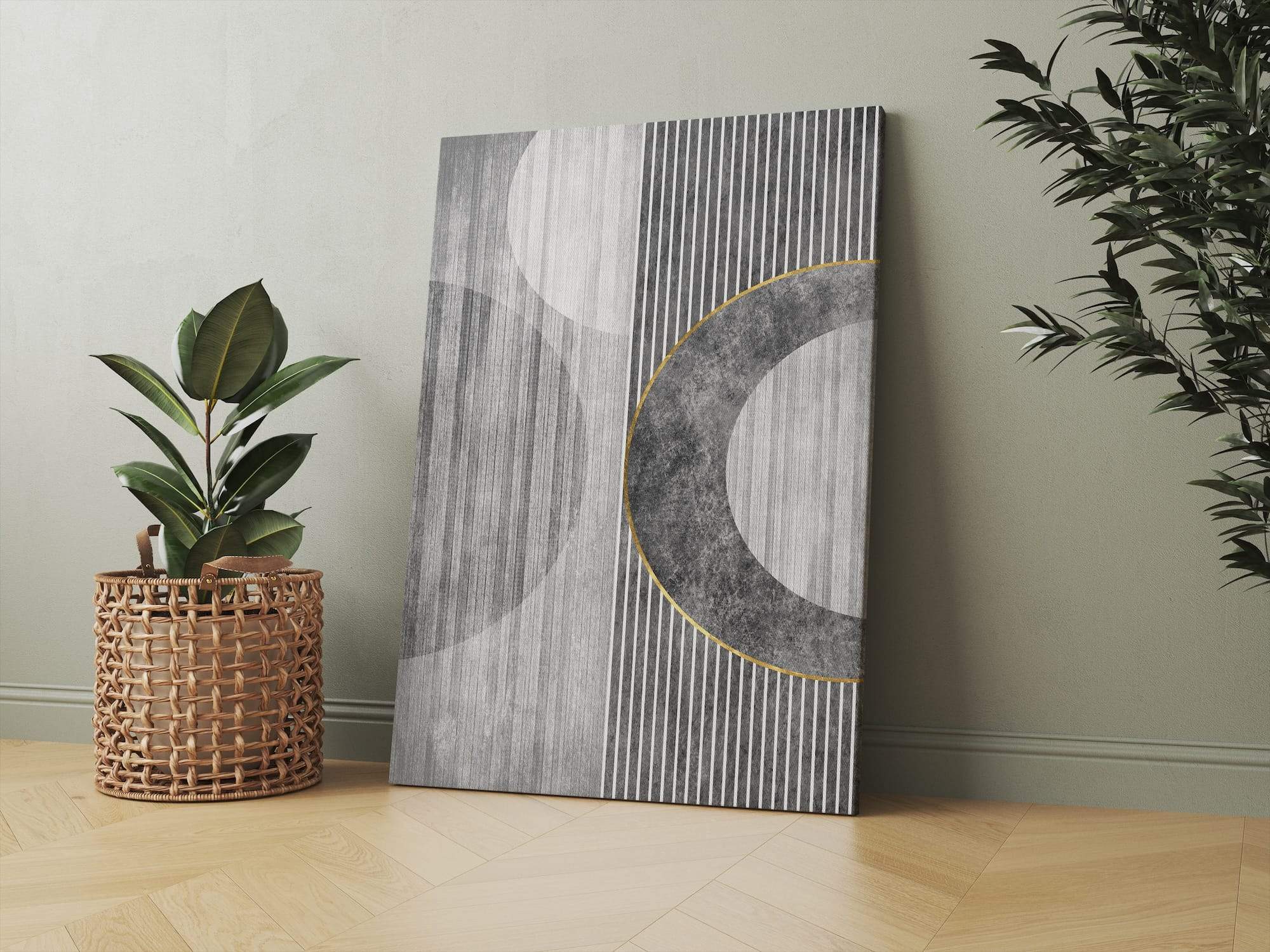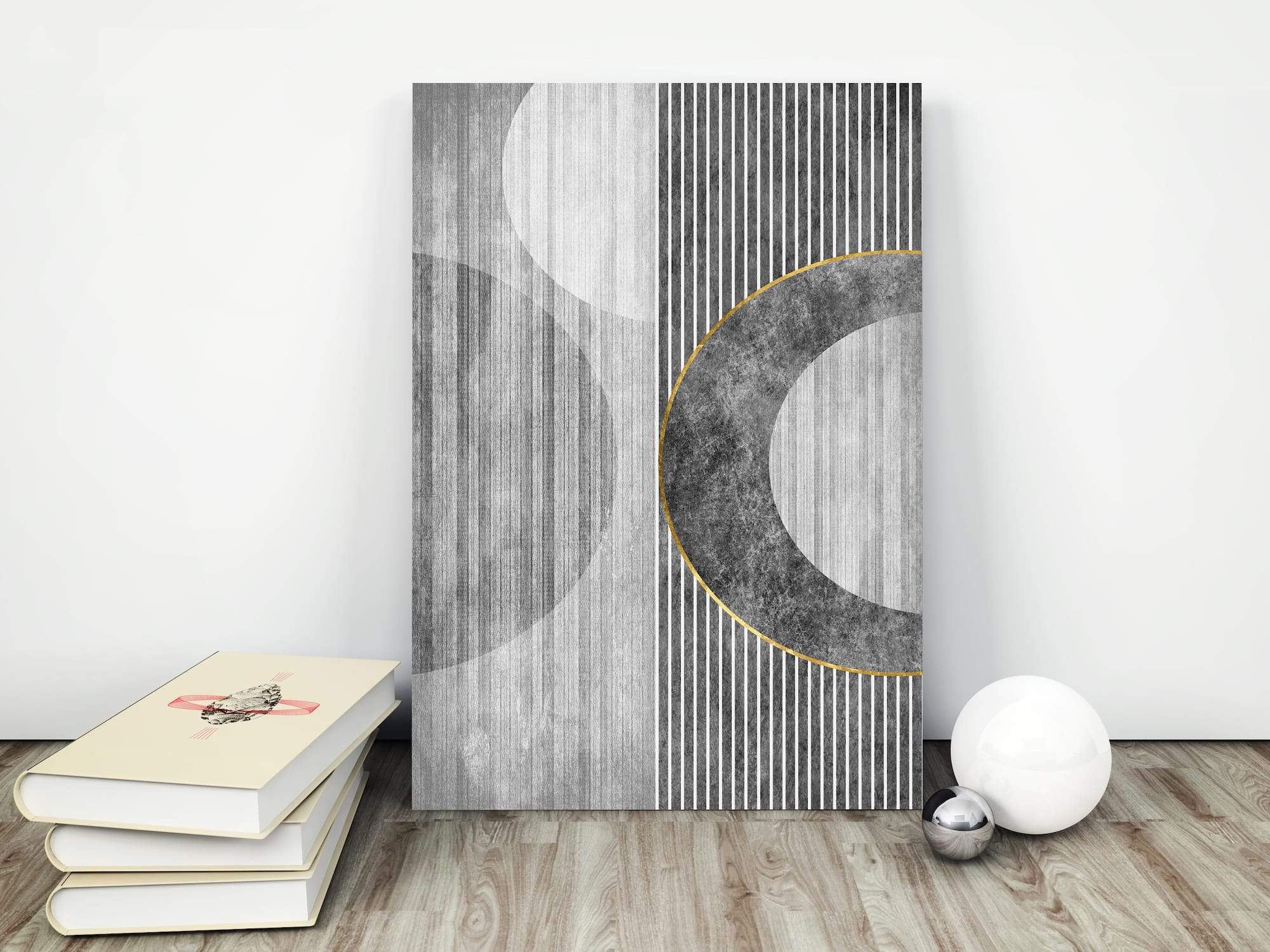 Monochromatic serenity meets geometric precision in this balanced study of form and restraint. Grayscale circles float across a subtly striped background, creating a visual rhythm that feels both structured and organic. The matte canvas texture enhances the piece’s minimal geometry, allowing each circular form to cast gentle shadows that shift with changing light throughout the day. Perfect for a meditation corner where clarity of thought is paramount, or above a reading nook that values quiet contemplation. This black and white composition brings sophisticated balance to any space, its stretched format providing the substantial presence needed to anchor modern interiors with timeless, understated elegance that never demands attention yet always rewards it.
