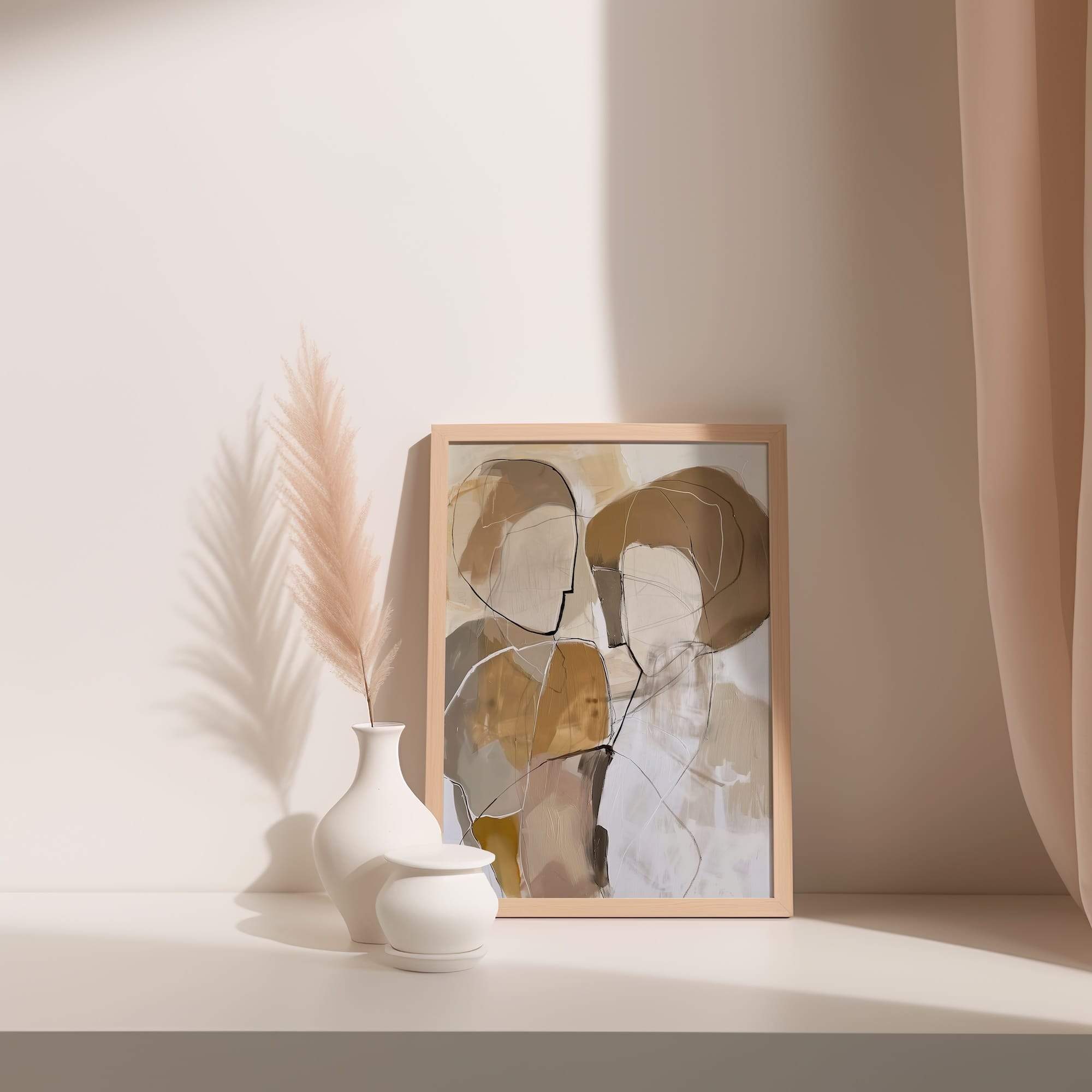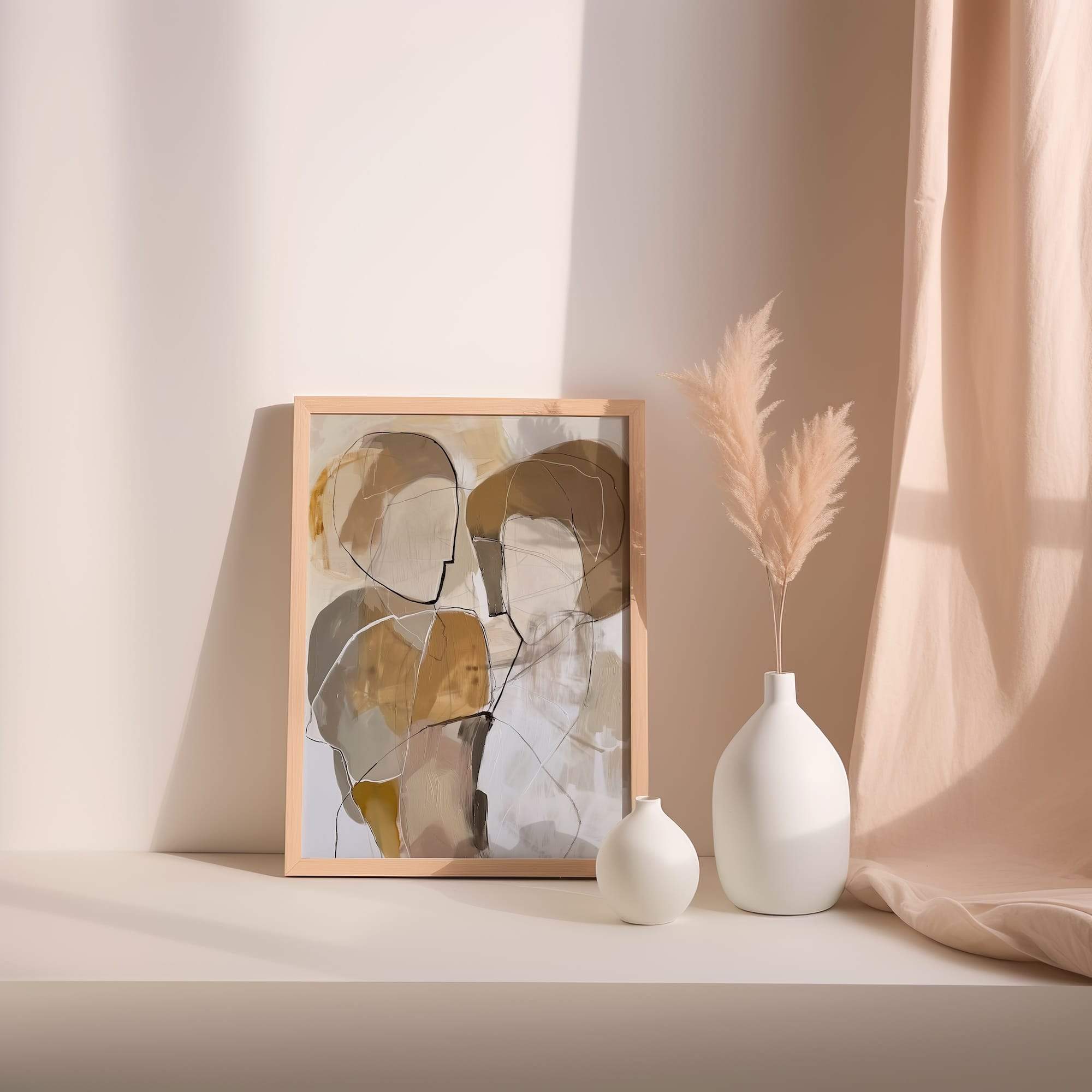 Where minimalism meets human expression, continuous line art traces the essence of faces in earthy, neutral tones. This abstract portrait captures the quiet poetry of features reduced to their most essential forms, each stroke flowing seamlessly into the next. The matte finish enhances the subtle interplay of warm ochres and soft beiges, creating depth without distraction. Perfectly suited for a serene bedroom or contemplative office space, this modern wall art speaks to those who find beauty in simplicity. The gentle abstraction invites contemplation, transforming any room into a gallery of thoughtful design where every glance reveals new nuances in the delicate linearity.