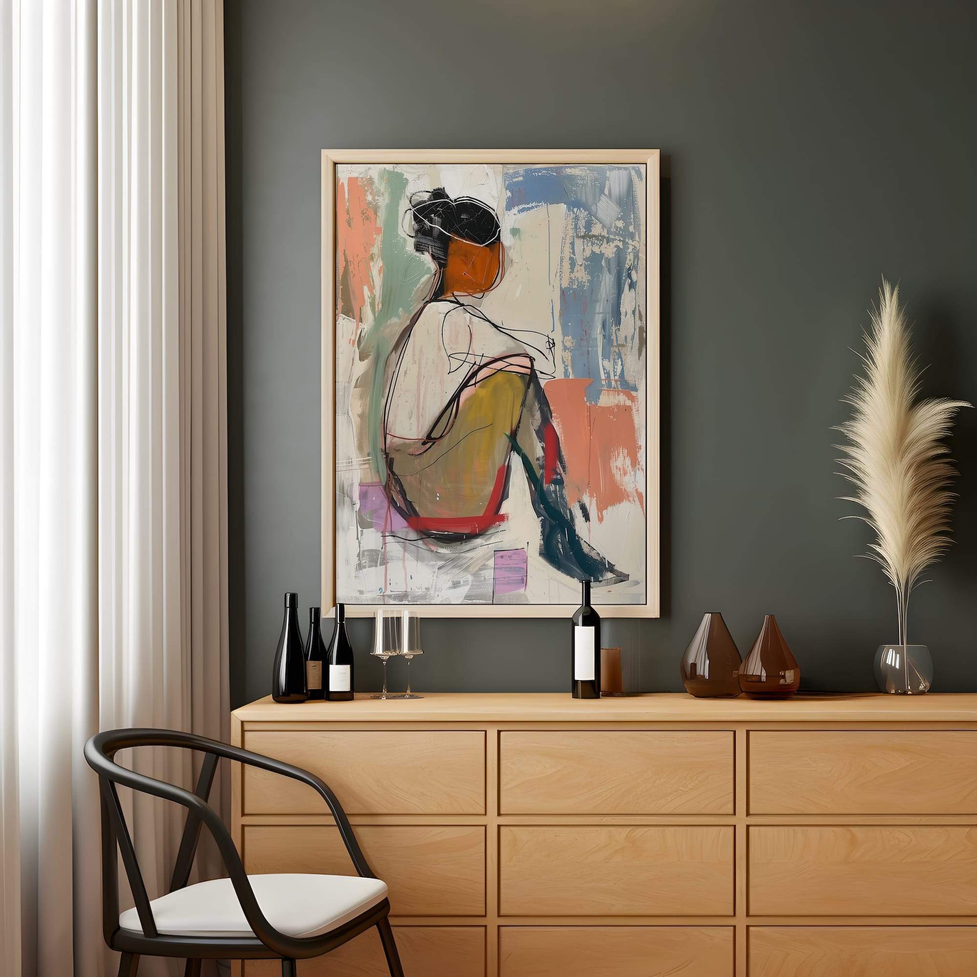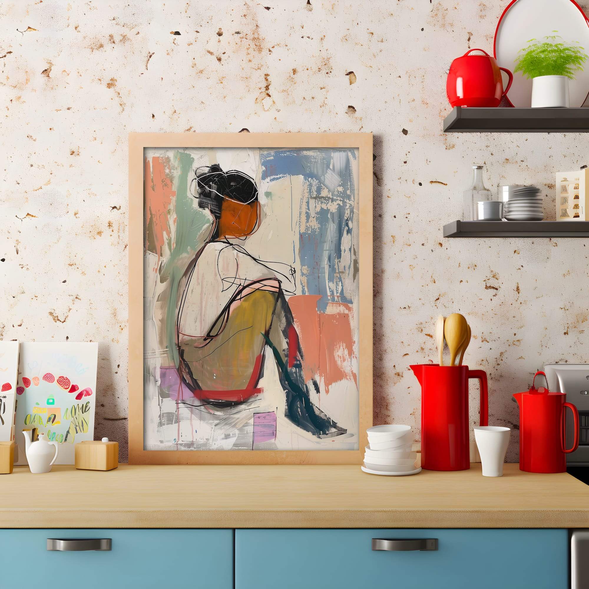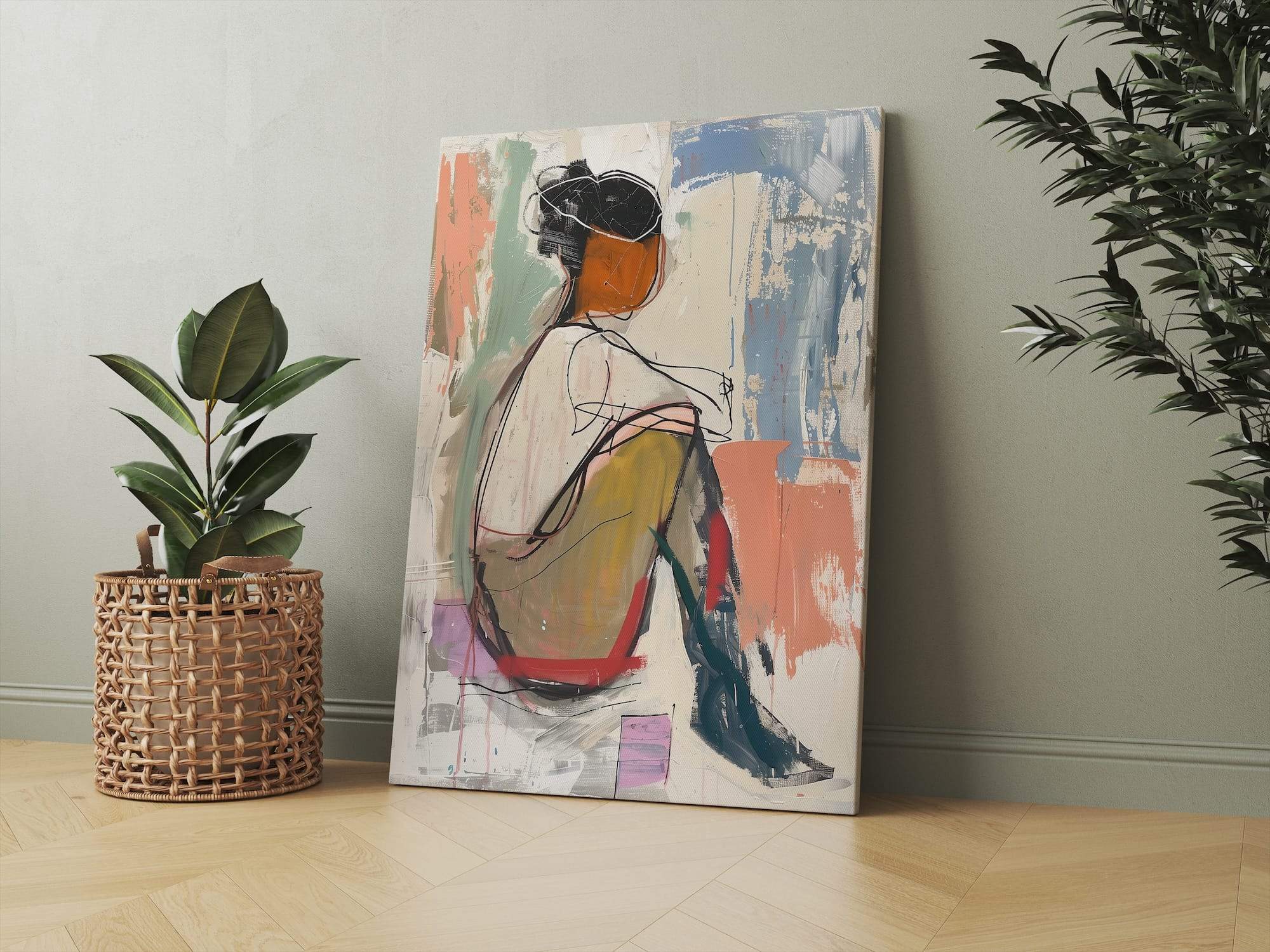 A moment suspended in warm pastels and expressive lines. This seated figure emerges from sketched outlines and gentle washes of color, capturing the poetry of a quiet pose. The abstract treatment honors the beauty of human form while leaving space for imagination, where each viewer might recognize their own moments of reflection or rest. The matte canvas brings subtle dimension to every brushstroke, creating texture that feels both raw and refined. Natural light plays beautifully across its surface, making it ideal for studios, reading nooks, or any space dedicated to creative contemplation. This is artwork that celebrates the art of simply being.