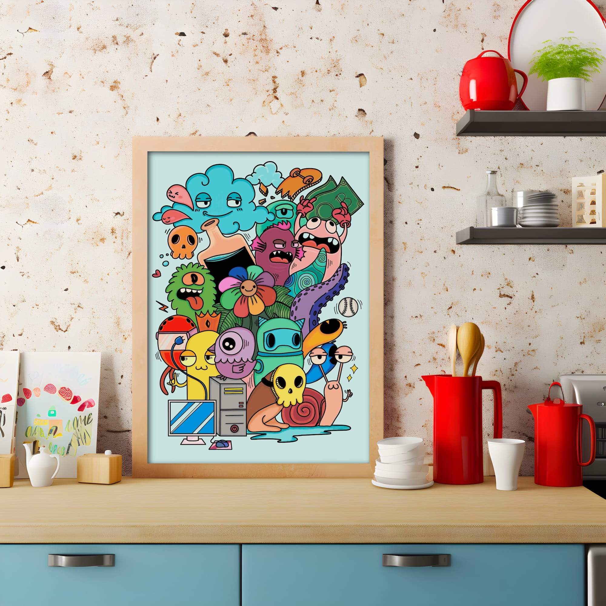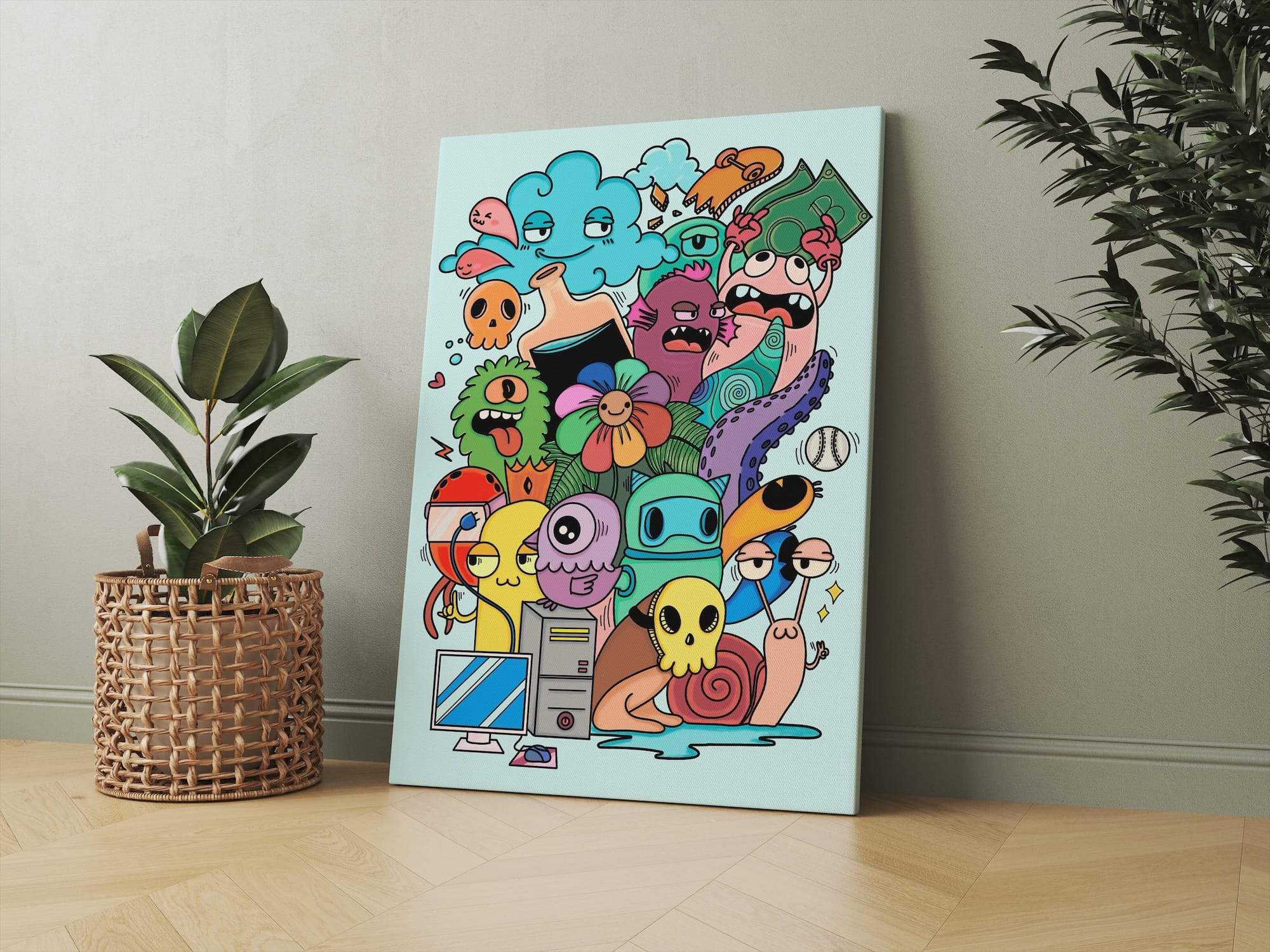 Enter a dimension where logic takes a backseat to pure creative expression, and funky characters dance across the canvas in surreal harmony. These goofy monsters celebrate the art of being wonderfully weird, each creature a testament to imagination unleashed. The collage format creates visual rhythm while the matte finish adds gallery-worthy sophistication to the playful chaos. Perfect for energizing a creative studio or adding personality to a modern apartment, this piece transforms walls into windows to alternate realities. The trippy creatures seem to shift and morph with each viewing, ensuring this canvas remains a source of discovery and delight for years to come.