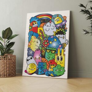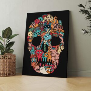 Doodle Skull Cute Monsters Character Mashup Matte Canvas Print