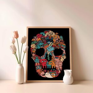 Doodle Skull Cute Monsters Character Mashup Matte Poster Print
