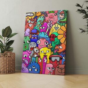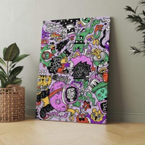 Floating Doodles Astronaut In Chaos Neon Aliens Matte Canvas Print