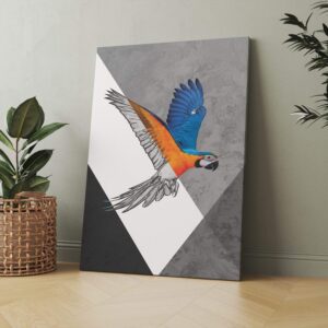 Macaw Sketch Color Flight Matte Canvas Print
