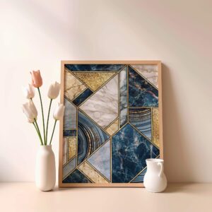 Midnight Geometry Marble Blue Matte Poster Print