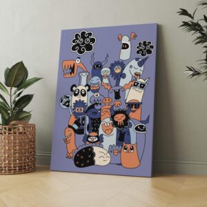 Minimalist Monsters Flat Style Happy Weirdos Matte Canvas Print